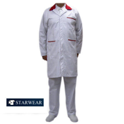 Ρόμπα κρεοπωλείου μακριά με διχρωμία στον γιακά και στην τσέπη