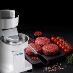 Πρακτική και στιβαρή πρέσα χάμπουργκερ, κατασκευασμένη από κράμα αλουμινίου ανοδιώμενο και ανοξείδωτο ταψί.